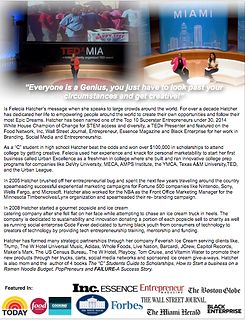With more than a decade of speaking to students and young adults, Felecia Hatcher has earned a reputation as a leading authority on entrepreneurship, branding, building tech enabled businesses and college funding.